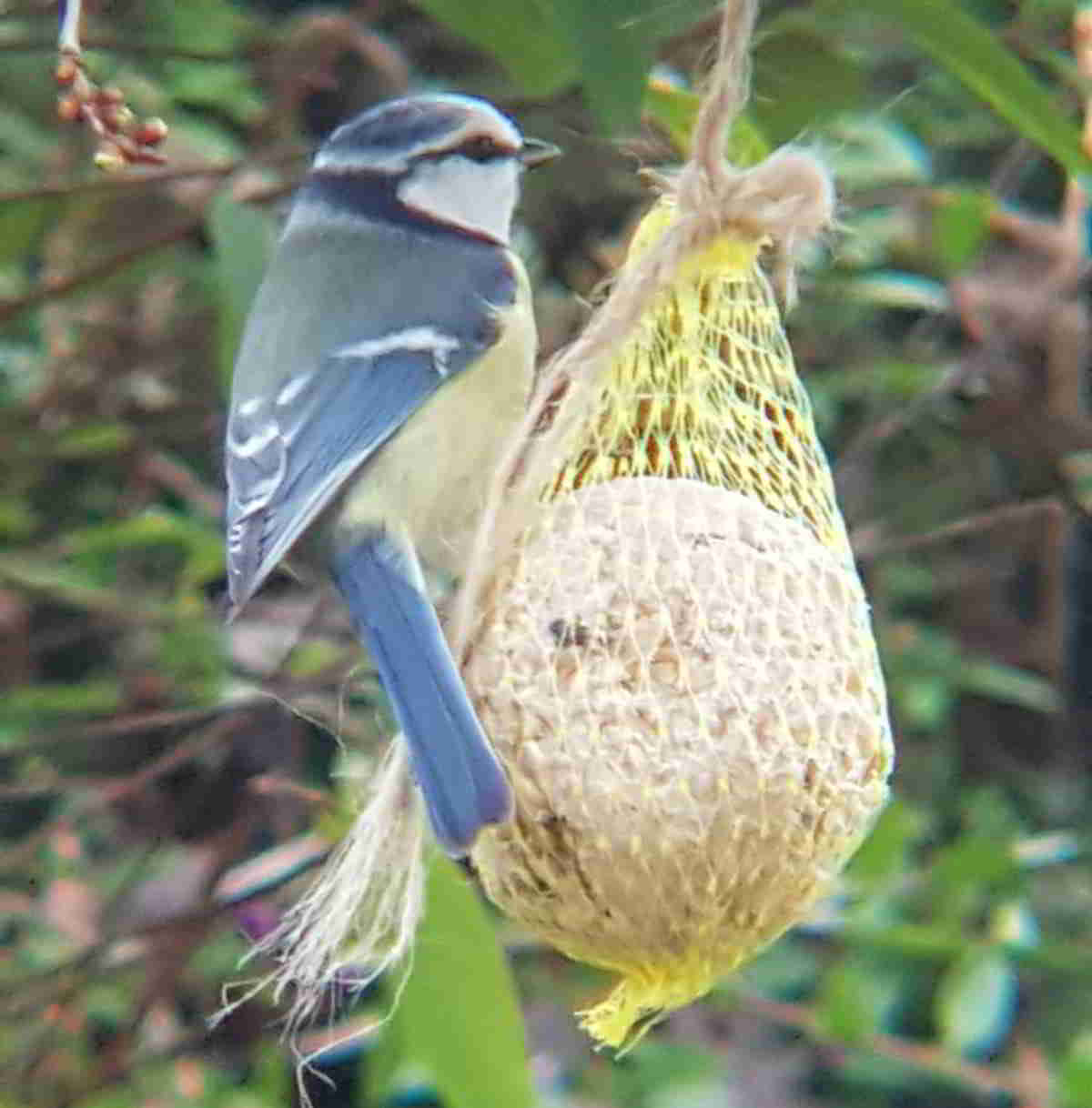 Blaumeise am Meisenknödel